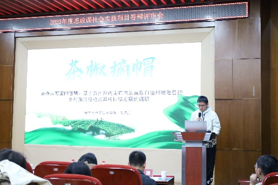 本科生院副院長(zhǎng)柯昌劍在答辯致辭中指出,思政課社會(huì)實(shí)踐是思政課的必要組成、重要環(huán)節(jié)和有效延伸,是踐行“大思政課”理念的重要平臺(tái)。學(xué)校高度重視思政課社會(huì)實(shí)踐,從本科思政必修課中單獨(dú)拿出2個(gè)學(xué)分、64個(gè)學(xué)時(shí),開設(shè)“思政課社會(huì)實(shí)踐”課程,并配套專項(xiàng)經(jīng)費(fèi),遴選、資助優(yōu)秀的社會(huì)實(shí)踐調(diào)查項(xiàng)目。在本科生院牽頭組織、馬克思主義學(xué)院具體落實(shí)下,調(diào)研團(tuán)隊(duì)到基層一線參觀考察、實(shí)地體驗(yàn)、深入調(diào)研,在此過(guò)程中,不斷增強(qiáng)對(duì)新時(shí)代黨的創(chuàng)新理論的政治認(rèn)同、思想認(rèn)同、理論認(rèn)同、情感認(rèn)同,達(dá)到了實(shí)踐育人的積極效果。